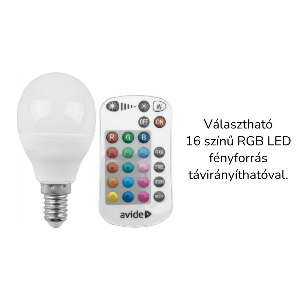 Lehetőség van 16 színű távirányítható izzóval kérni a lámpát.